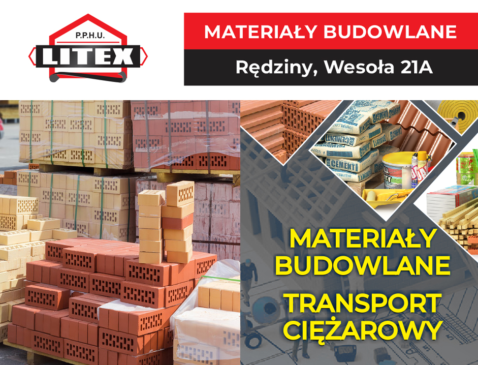 LITEX  /  HURTOWNIA BUDOWLANA  /  TRANSPORT CIĘŻAROWY  ul. Wesoła 21A, Rędziny k/Częstochowy tel.: (34) 327 94 92  tel. kom.: 602 490 945
